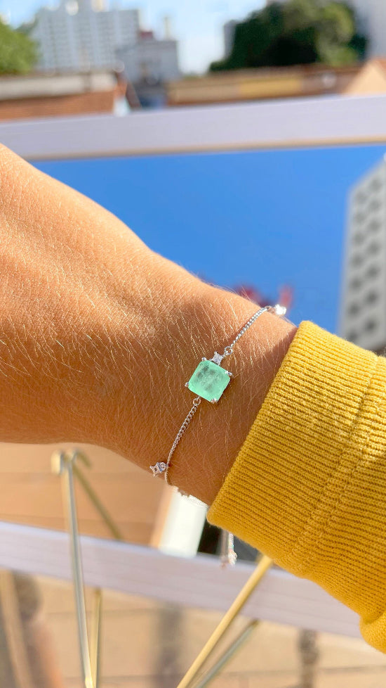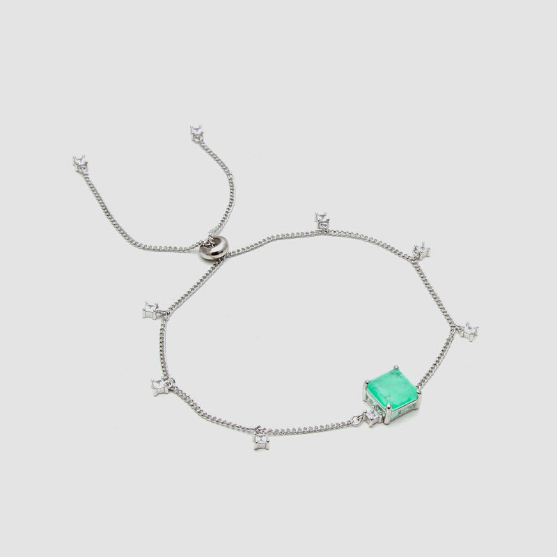 Crafted from high-quality sterling silver, this adjustable bracelet features a striking fusion emerald centerpiece, blending classic elegance with contemporary style. Its adaptable design ensures a perfect fit, while the luminous emerald adds a refined touch of color, suitable for both formal occasions and everyday wear. Durable and versatile, this piece enhances any collection with understated sophistication.