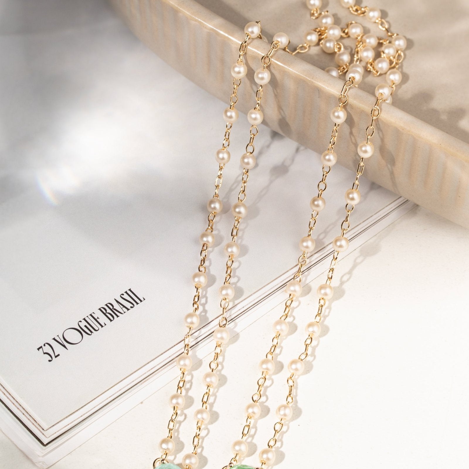 Gemstone: crystal and baroque pearls