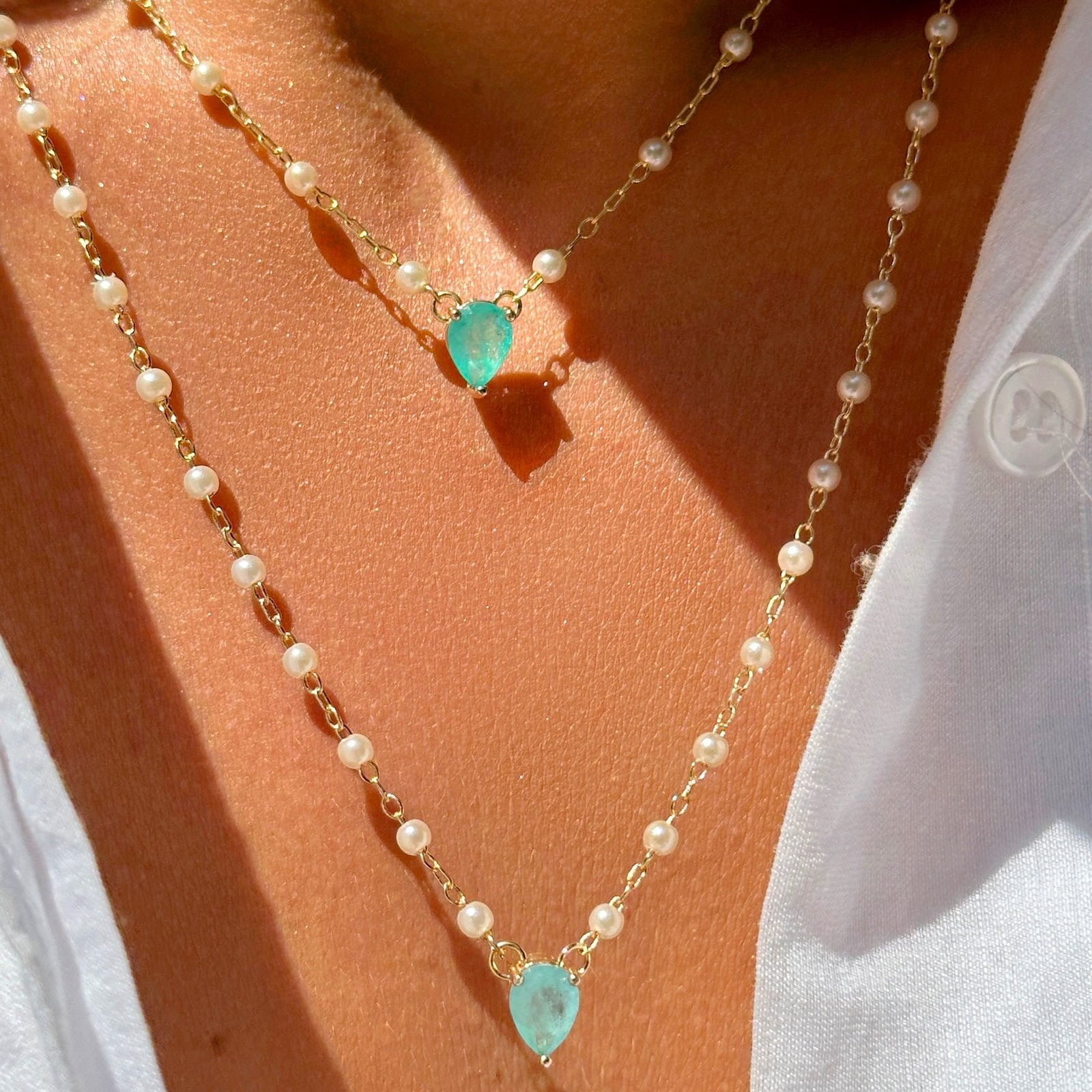 Scapular baroque pearls and drop crystal tourmaline