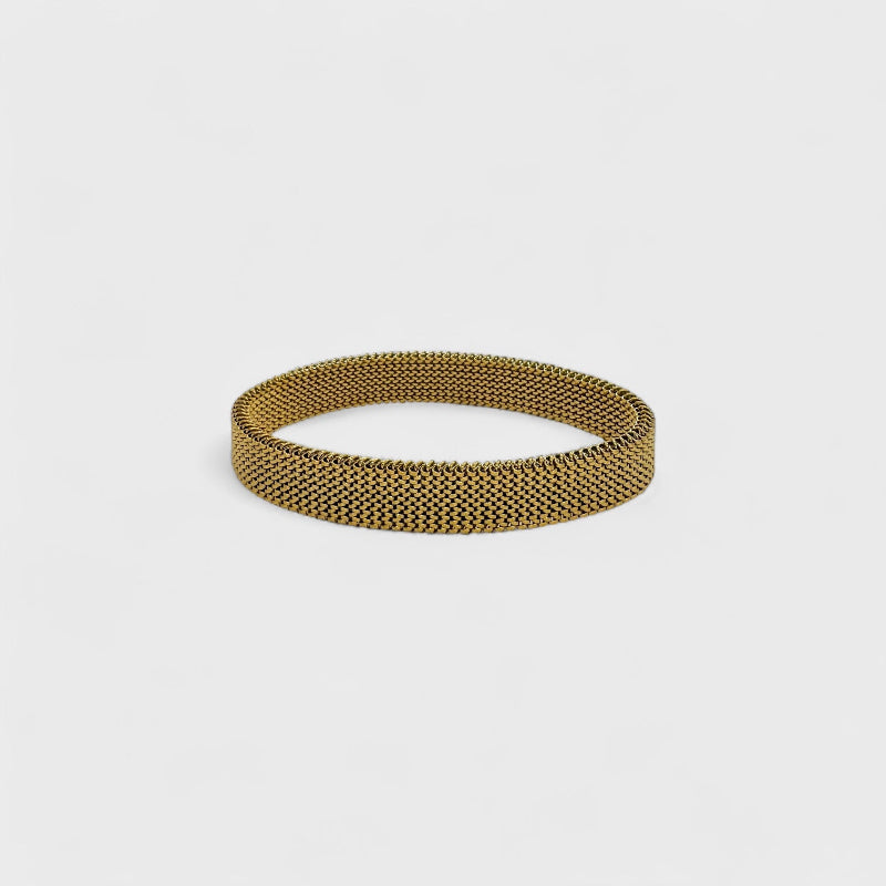 This flexible gold bracelet combines elegance with comfort, adapting smoothly to your wrist for a refined fit. Crafted with precision, its supple design ensures durability without compromising style, making it an ideal accessory for both everyday wear and special occasions. The warm gold tone adds a timeless appeal, enhancing your jewelry collection with expert craftsmanship and lasting quality.