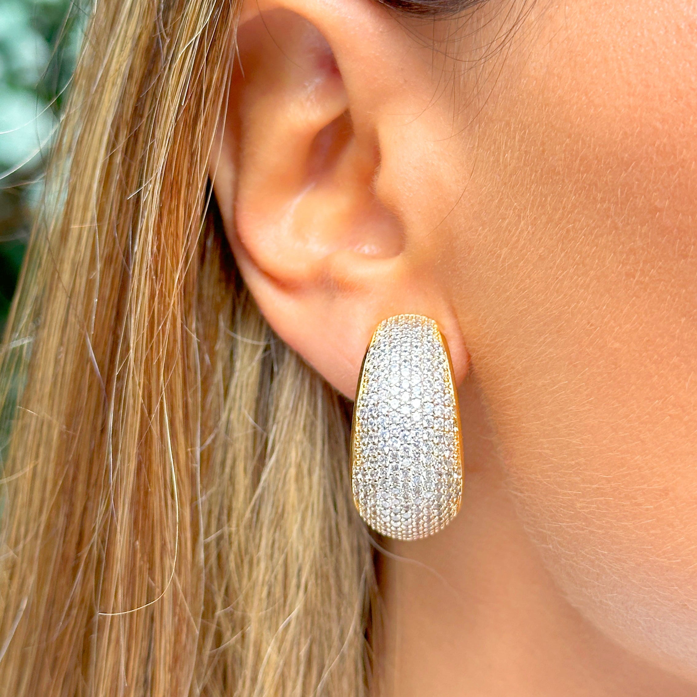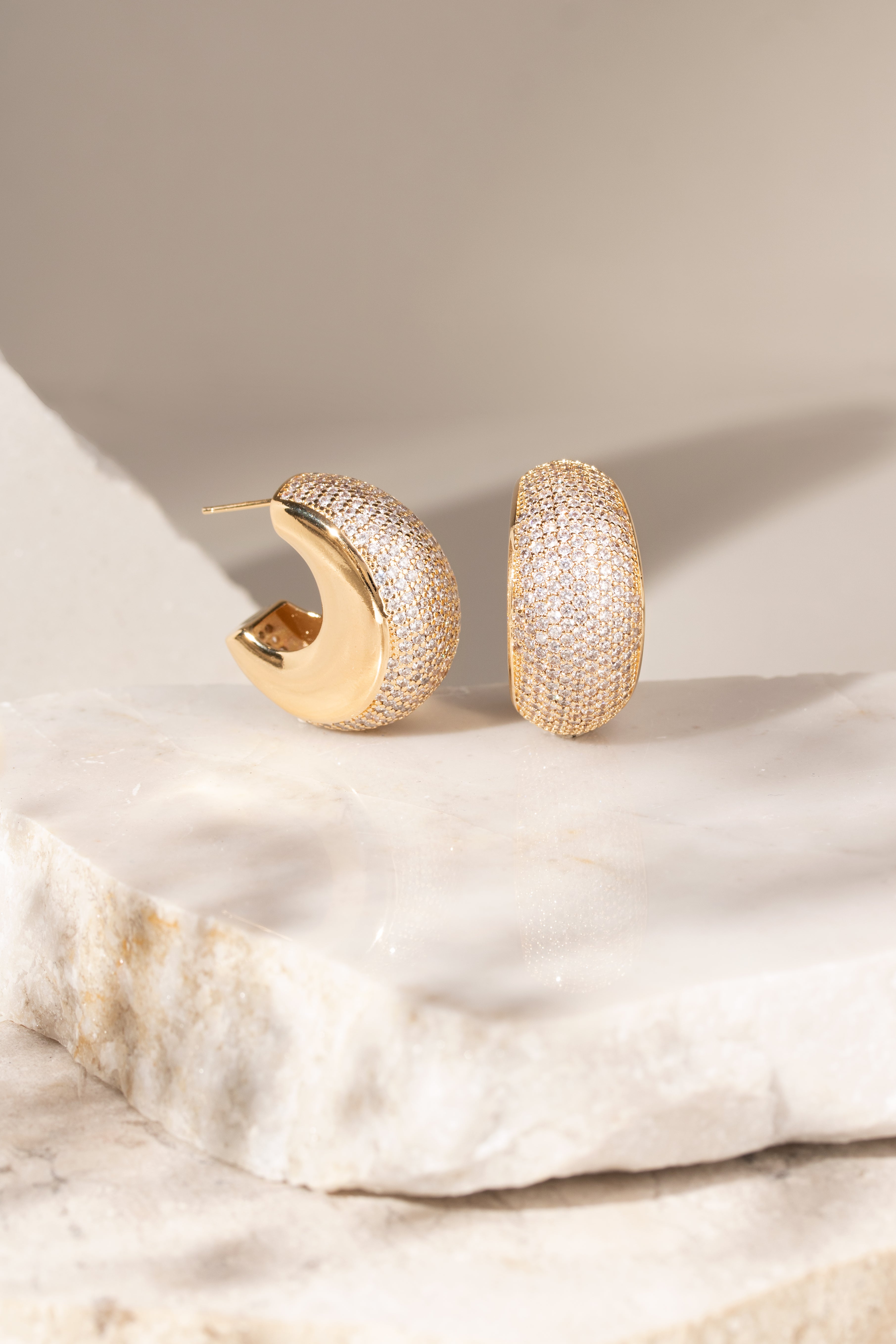 These chunky hoop earrings feature stunning zirconia studs, adding a touch of elegance to your daily ensemble. The hoops are perfect for making a statement and elevating any outfit. Made with high-quality materials, these earrings are sure to become a staple in your jewelry collection.