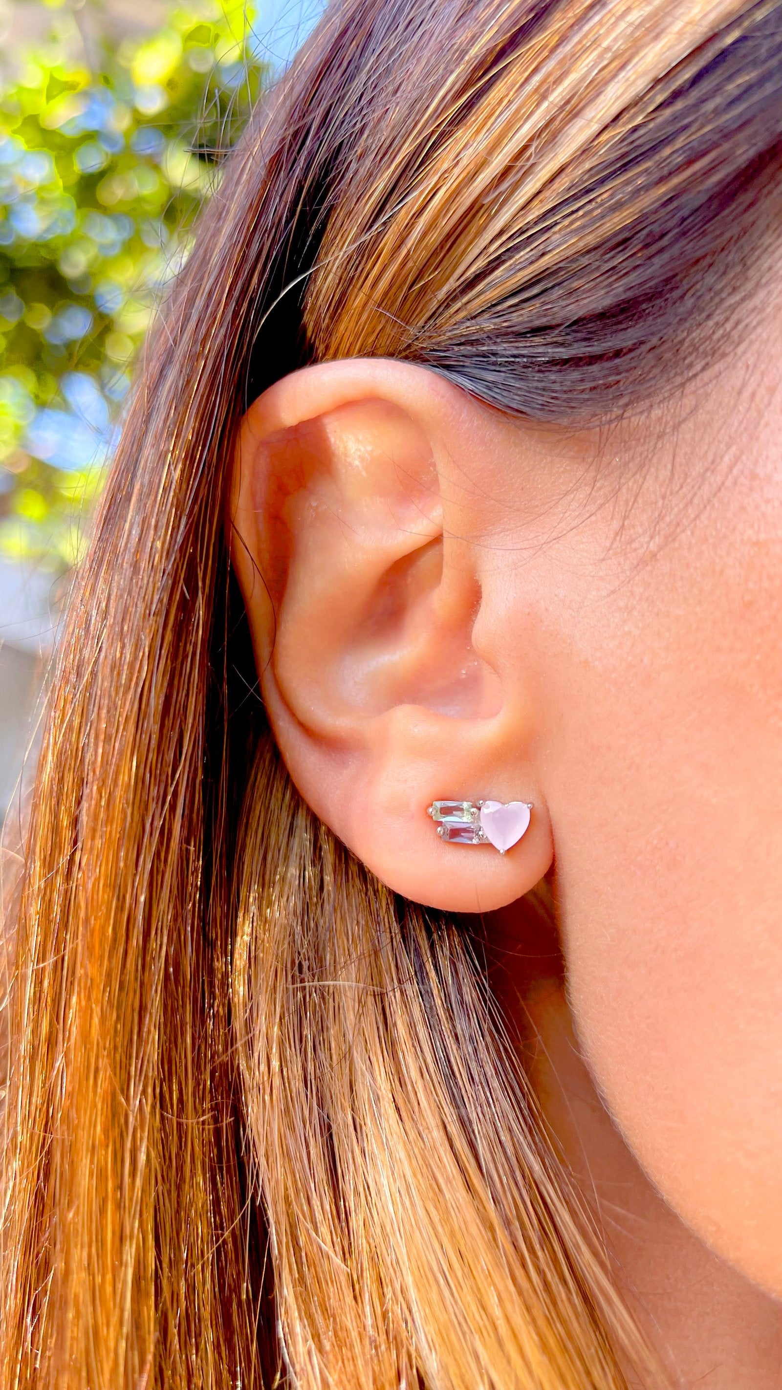 These light pink sterling silver earrings combine delicate color with expert craftsmanship. Designed as ear cuffs, they offer a comfortable, secure fit without requiring pierced ears. Their subtle heart shape adds a touch of elegance while maintaining a modern, minimalist aesthetic, making them suitable for both everyday wear and special occasions. Crafted from high-quality sterling silver, they ensure durability and hypoallergenic comfort.