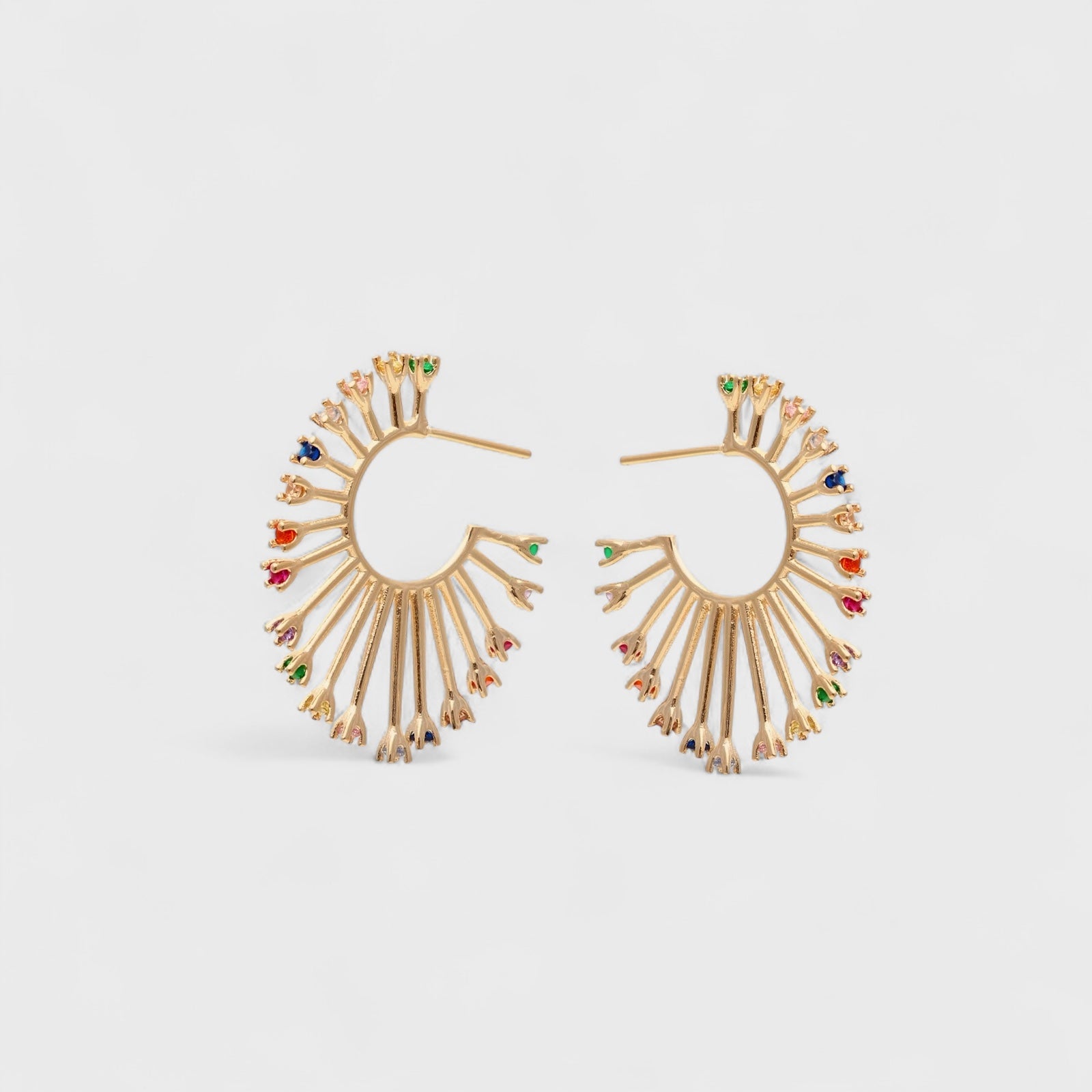 These colourful hoop zirconia earrings combine vibrant hues with expert craftsmanship, offering a refined accessory that enhances any outfit. The carefully set zirconia stones provide lasting sparkle and durability, making them an elegant choice for both everyday wear and special occasions. Their classic hoop design ensures timeless appeal while adding a subtle pop of colour to your jewelry collection.