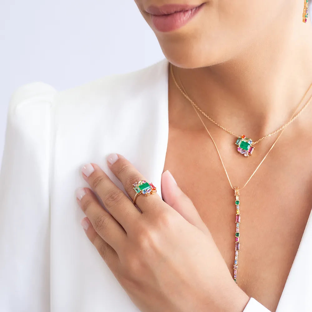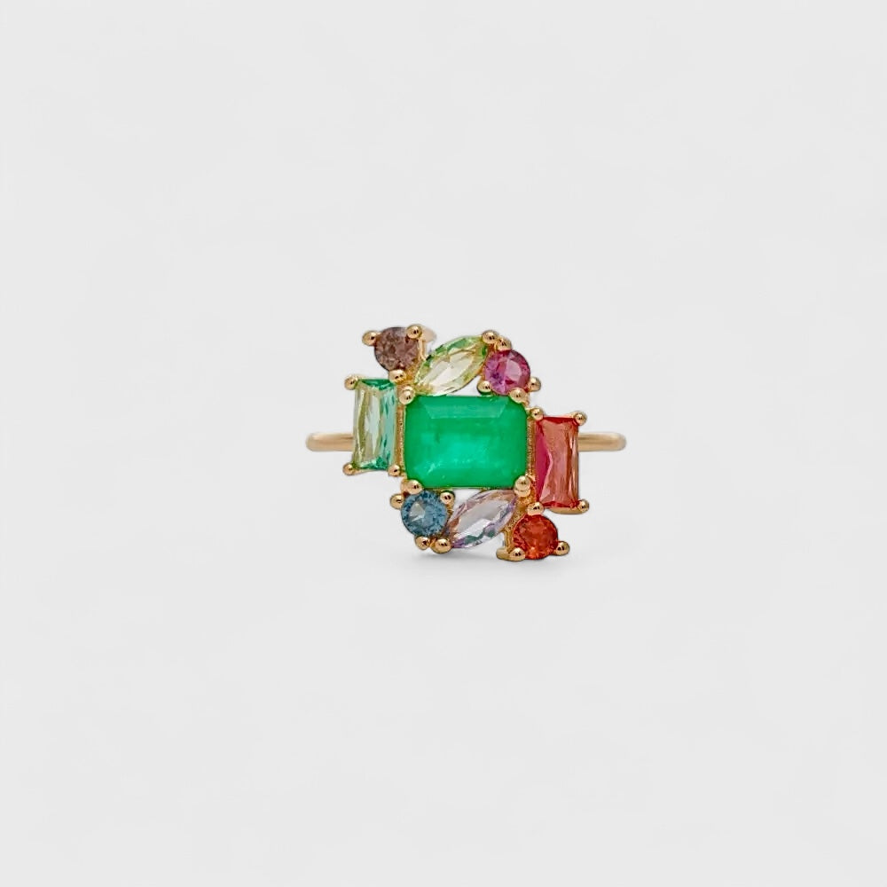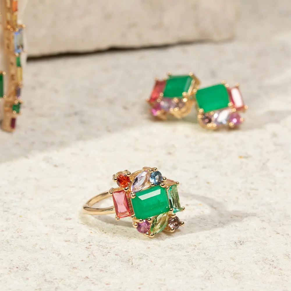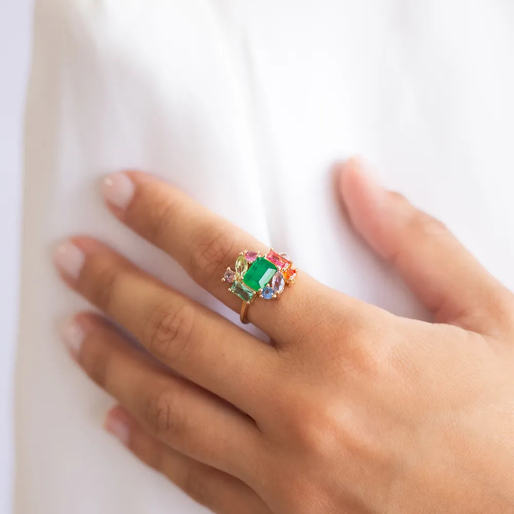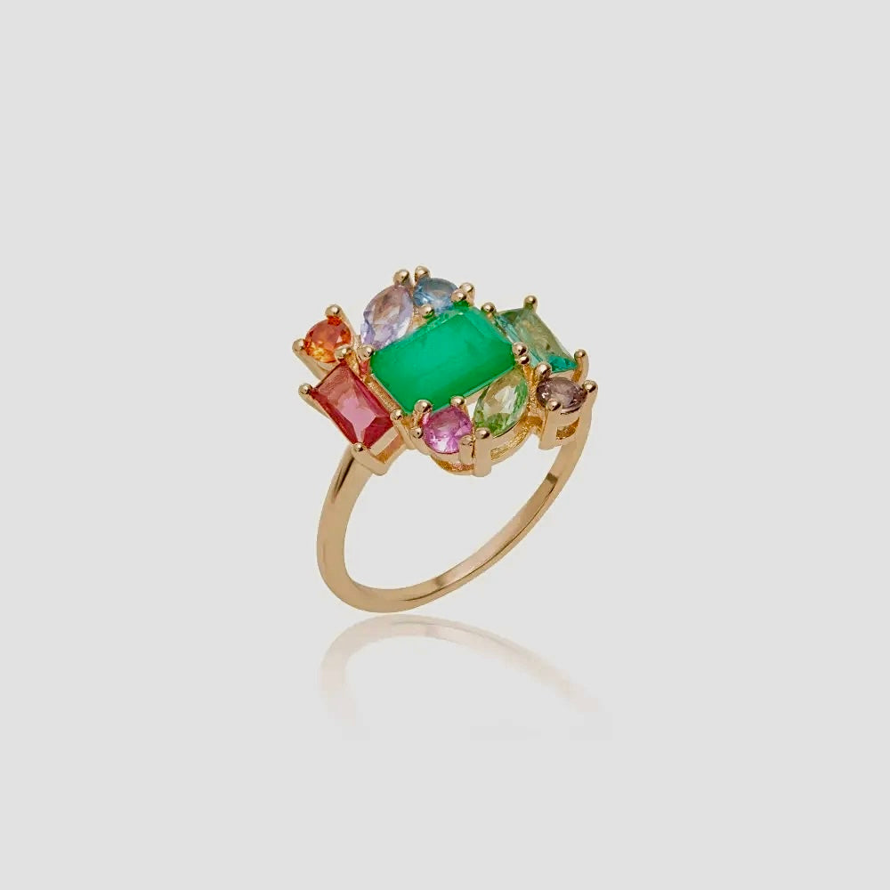 This colourful ring adds a touch of luxury to any outfit. With its vibrant hues and elegant design, it is sure to make a statement. Made from high-quality materials, it is durable and long-lasting. Enhance your style and sophistication with this beautiful piece of jewelry.
