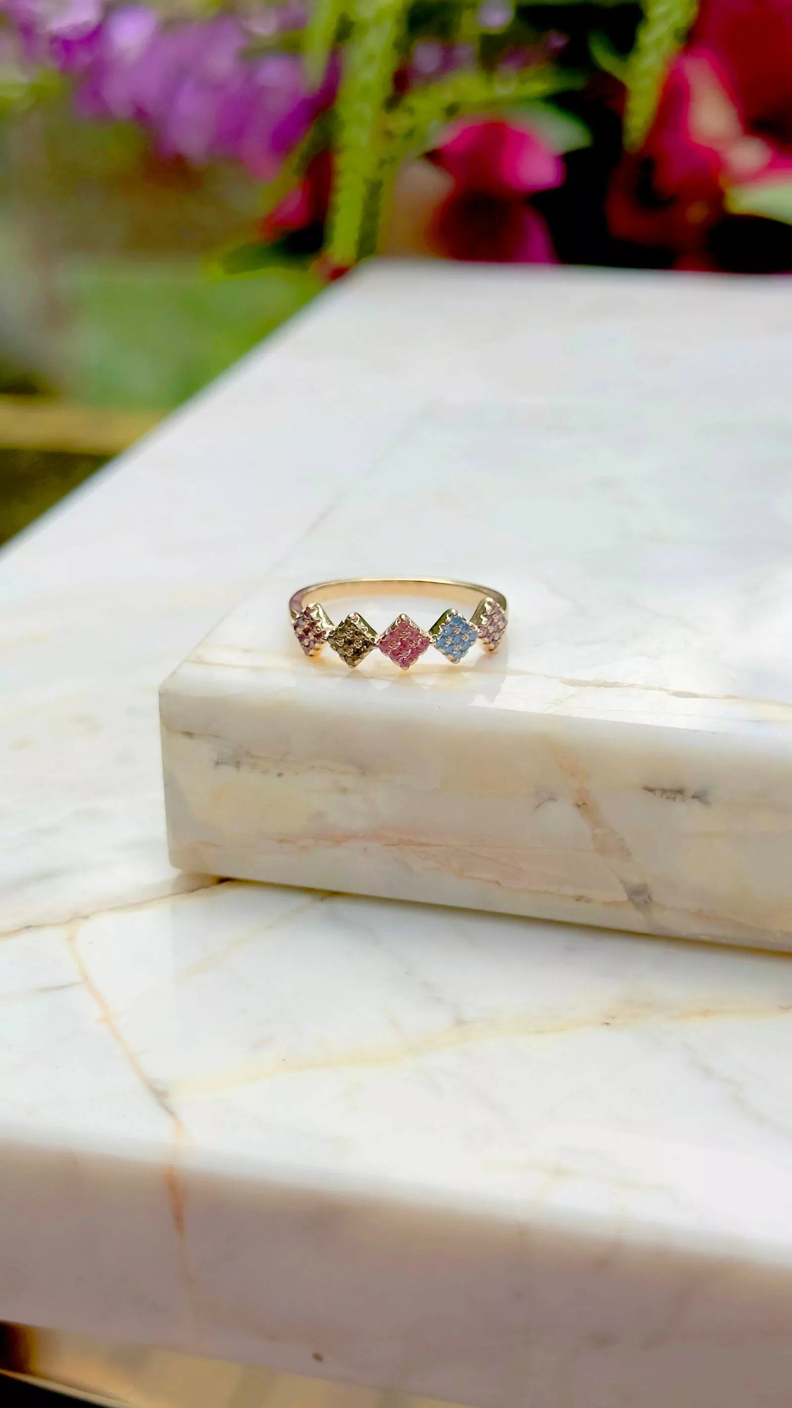 Elevate your collection with this expertly crafted colourful zirconia ring. Featuring high-quality zirconia stones, it offers vibrant, lasting brilliance akin to precious gemstones. The precision cut enhances light reflection, creating a sophisticated sparkle that complements any ensemble. Its durable setting ensures wear resistance, making it an ideal accessory for both daily use and special occasions. A refined choice for those seeking elegance with enduring charm.