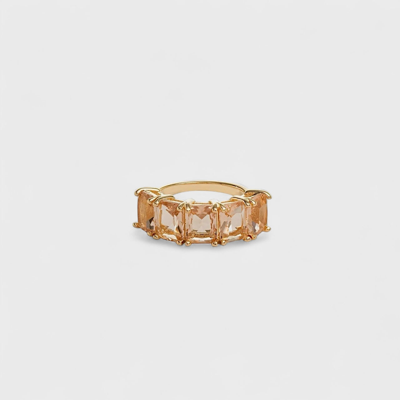 Ring with 5 Rectangles 6x8 Morganite Crystal