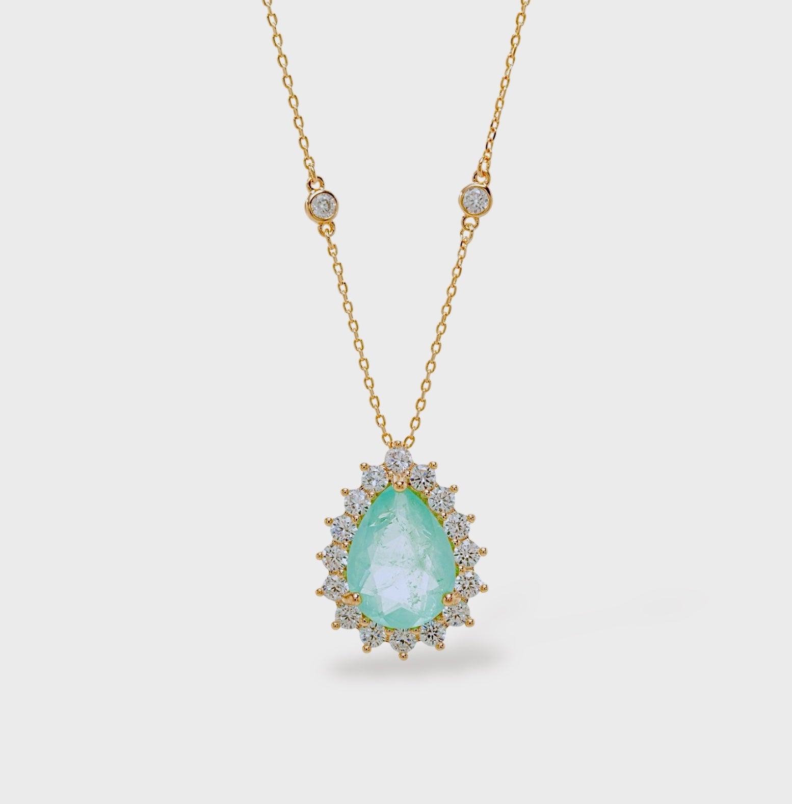 This elegant necklace features a drop design with a beautiful tourmaline stone. Its sophisticated style will elevate any outfit, making it a versatile accessory for any occasion. Add a touch of glamour with the smooth curves and natural shine of tourmaline.