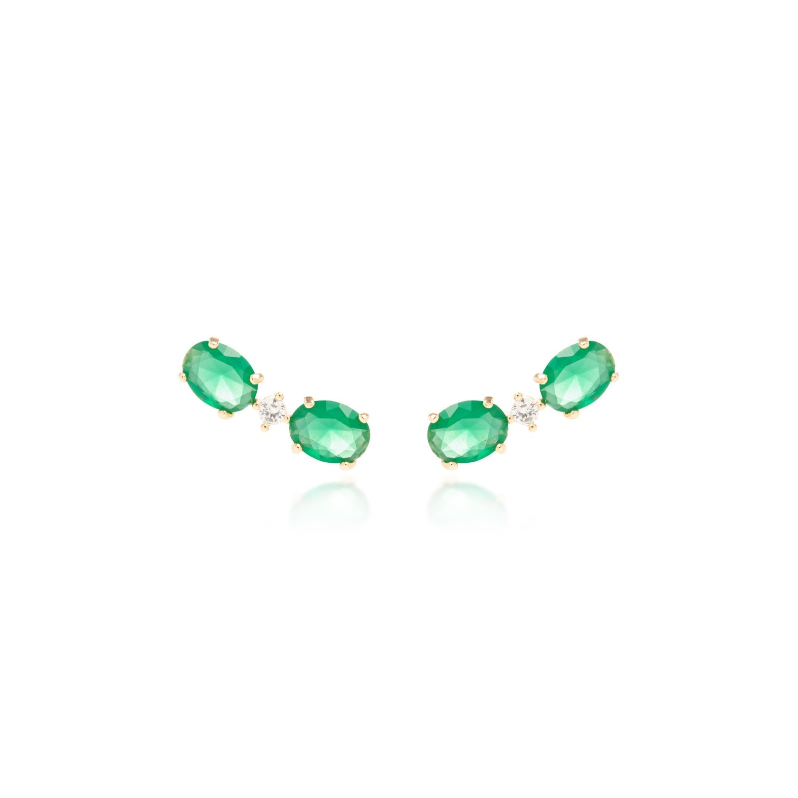 The oval earrings with emerald crystal and white zircons, plated in 18k gold, are a sophisticated and elegant piece. Its design highlights the beauty of the oval-shaped green crystals, surrounded by zircons that add shine and charm to the look.