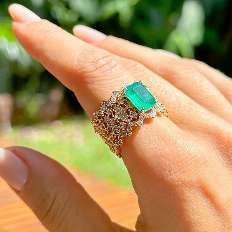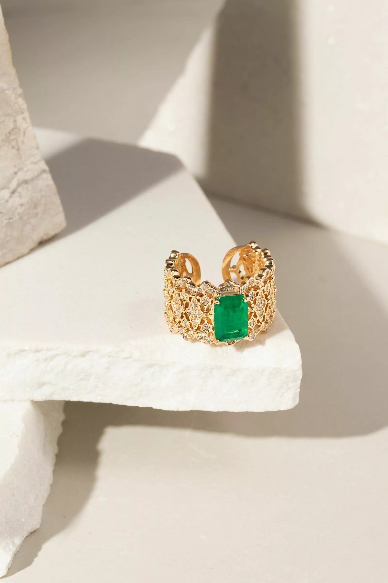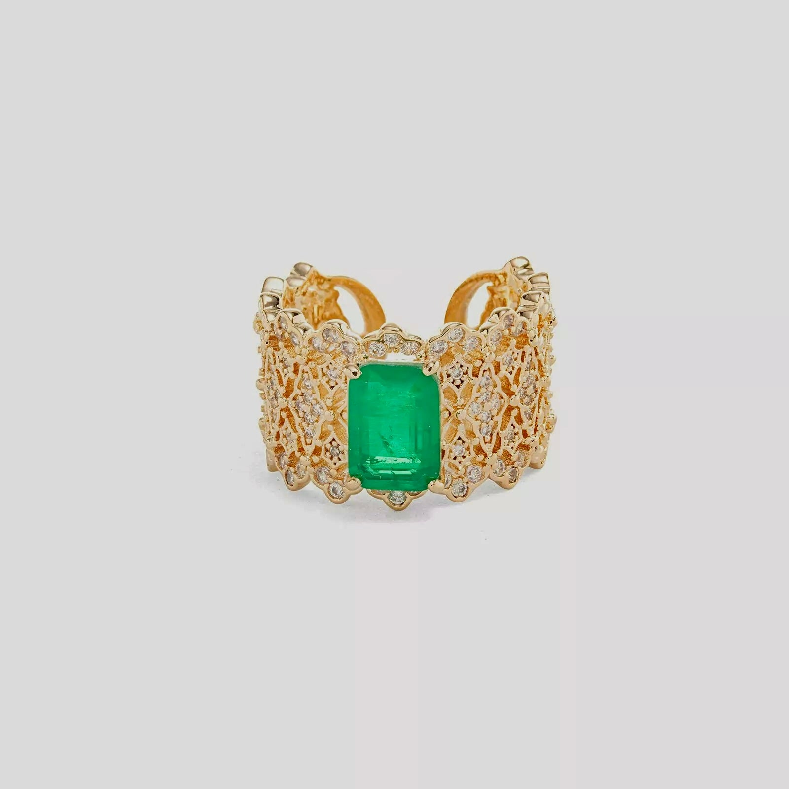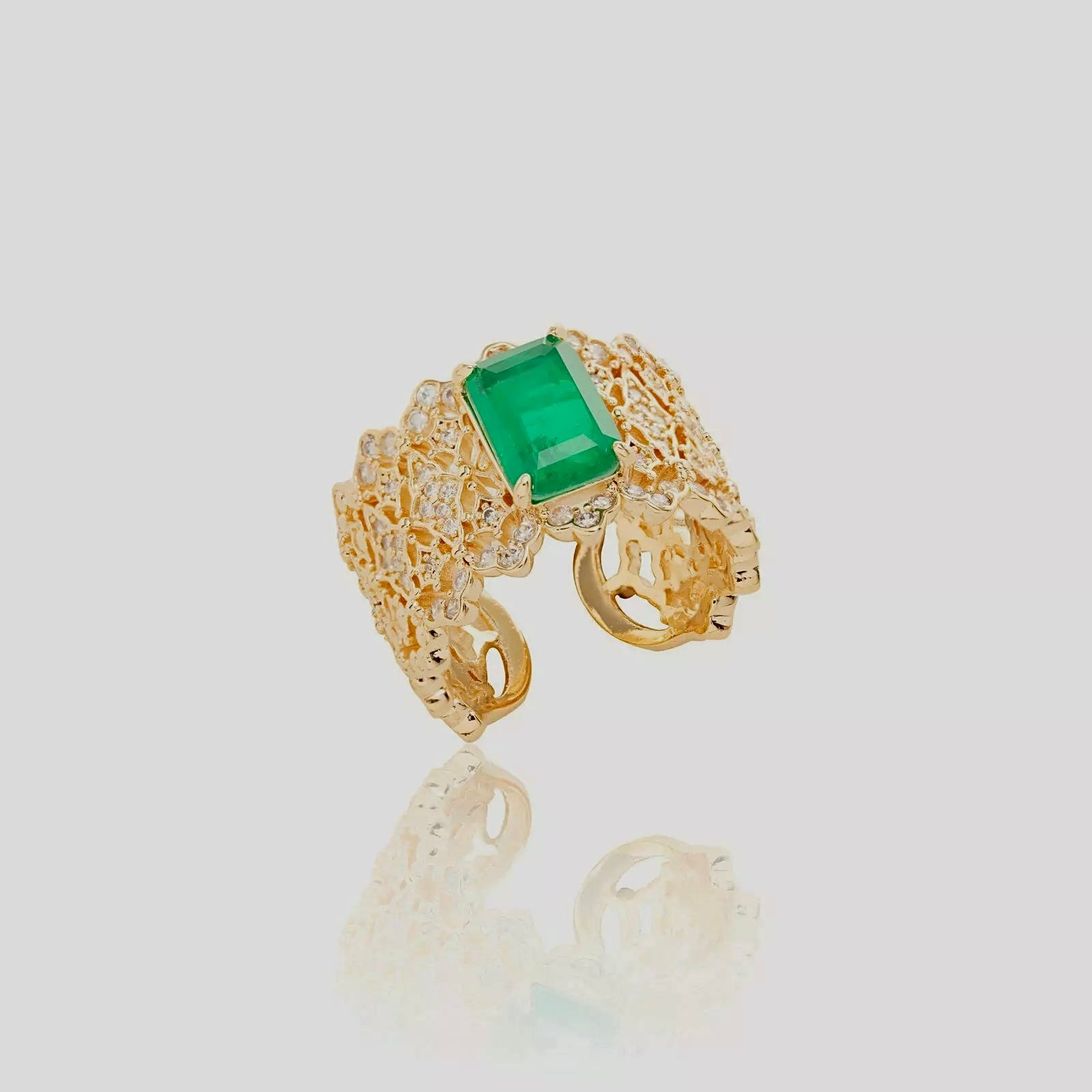 Elevate your jewelry collection with the Fusion Emerald Ring, a masterpiece of expert craftsmanship. This ring features a stunning emerald centerpiece, meticulously set to highlight its vivid green brilliance. Designed for those who appreciate refined elegance, it combines timeless luxury with contemporary sophistication, making it an impeccable statement piece for any occasion.