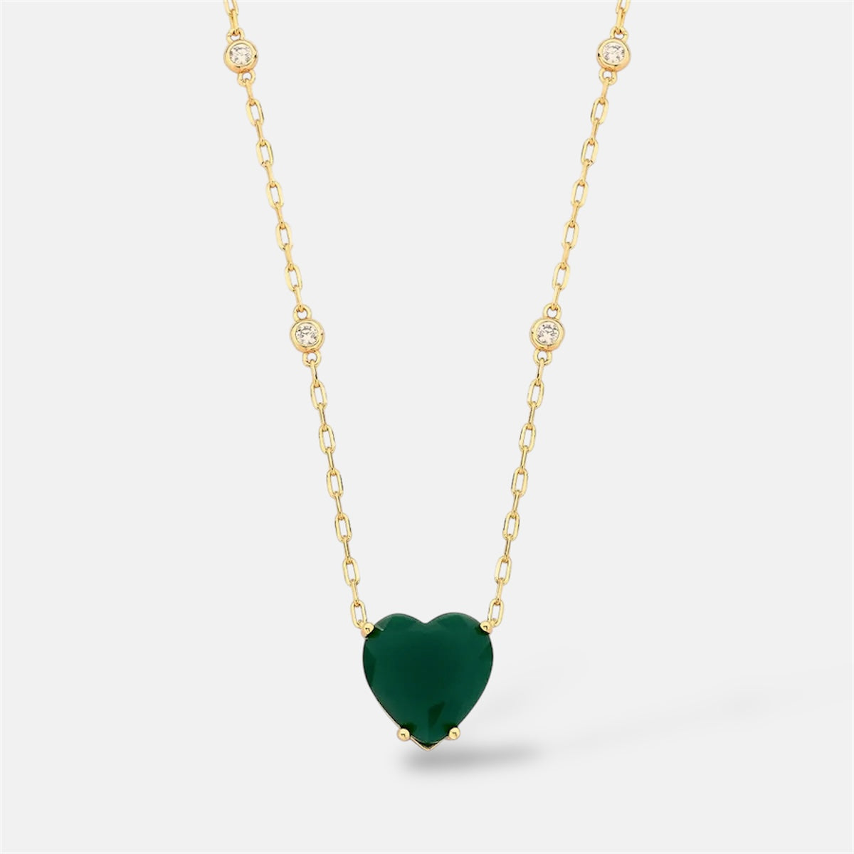 Heart Emerald Zirconia Necklace Crafted with precision, this necklace features a striking heart-shaped emerald zirconia stone that captures light with exceptional brilliance. The cubic zirconia delivers diamond-like sparkle at a fraction of the cost, making it an accessible choice for those seeking sophisticated elegance. The emerald hue adds a distinctive touch, perfect for layering or wearing as a standalone statement piece. Ideal for gifting or personal indulgence, this piece combines timeless design with contemporary appeal.