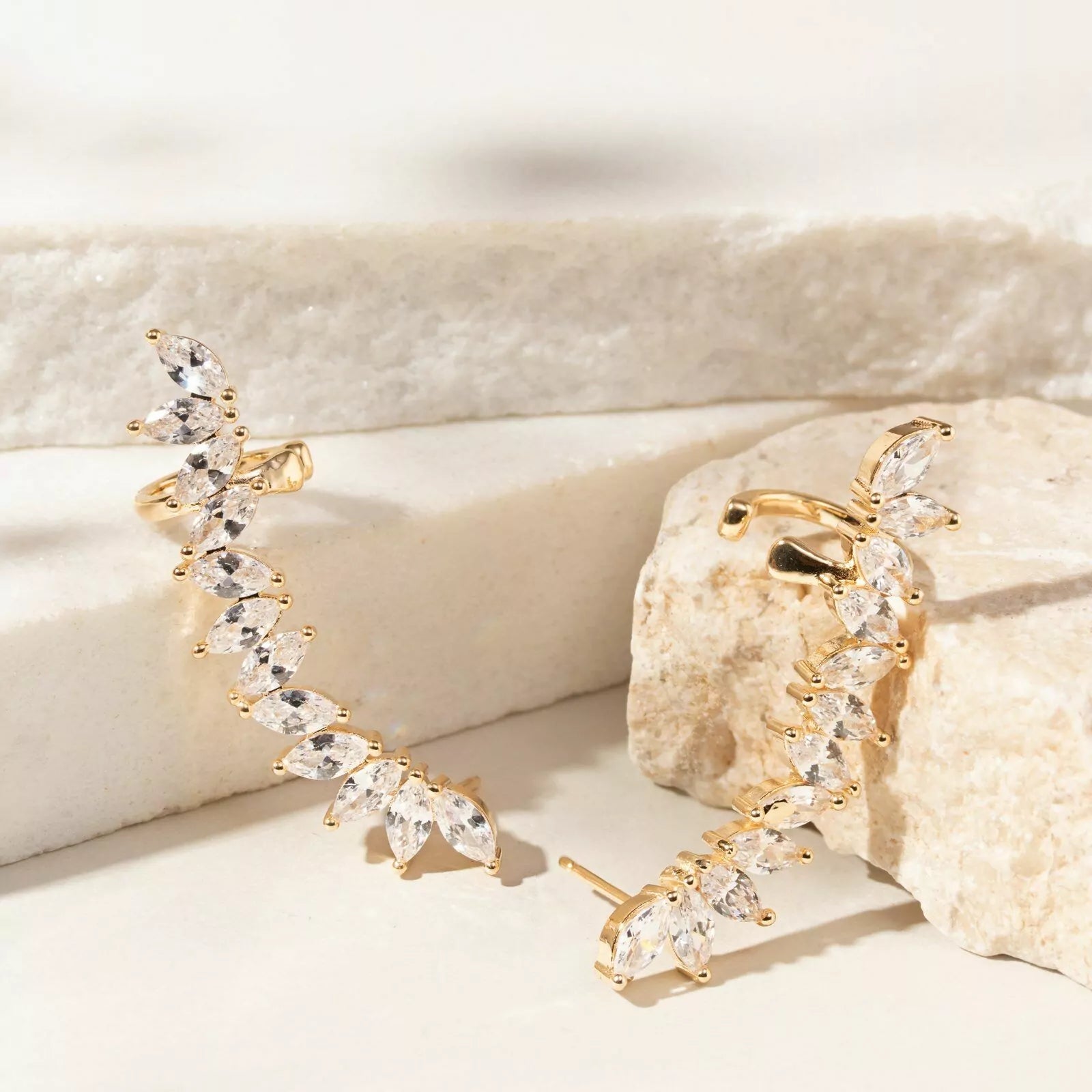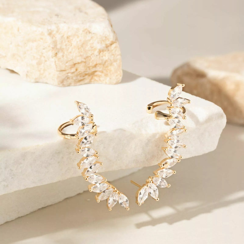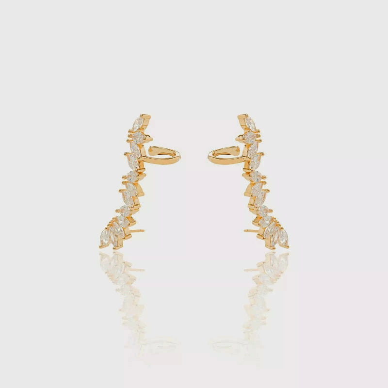 Elevate your style with these expertly crafted long ear cuff earrings, featuring a sophisticated gold-plated finish and dazzling zirconia stones. Designed to gently hug the ear without the need for piercings, they combine durability with refined elegance. Perfect for adding a subtle statement to any outfit, these earrings offer a flawless blend of contemporary design and timeless sparkle.