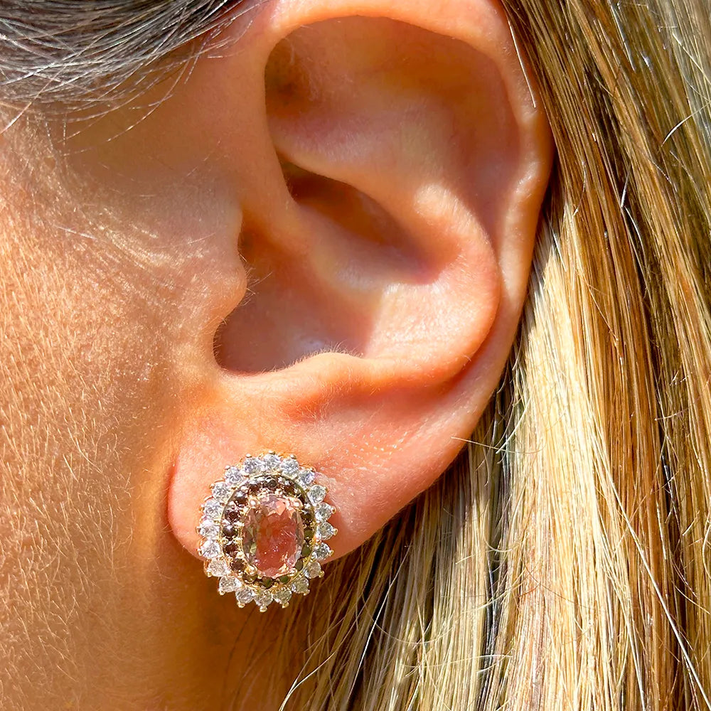 Rhodolite Crystal Oval Earring with White and Chocolate Zirconias Studded Brooch