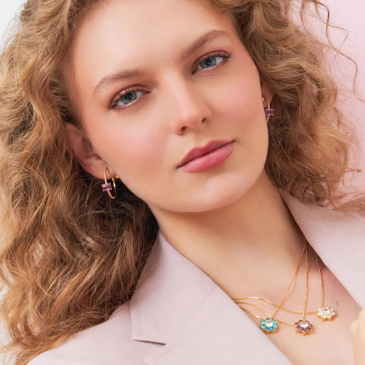 The base material consists of a copper and zinc metal alloy and is gold plated. We also add a protective varnish that ensures the piece lasts longer. Our pieces do not contain nickel in their composition and we also use an anti-allergenic layer.