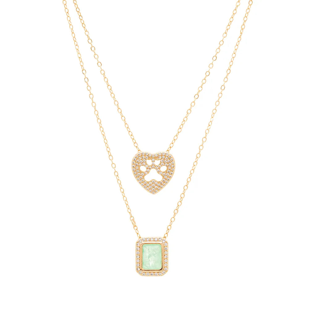 RECTANGLE SCAPULAR NECKLACE AND HEART PETS OF FUSION COLOMBIAN EMERALD AND WHITE ZIRCONIA 65CM