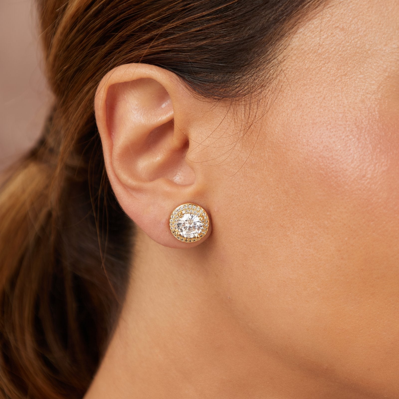 This solitaire set features elegant round zirconia stones expertly set in an 18k gold-plated finish. Designed for lasting brilliance, it offers a refined look that enhances any outfit with subtle sophistication and timeless style. Ideal for those seeking quality and understated luxury in their jewelry collection.