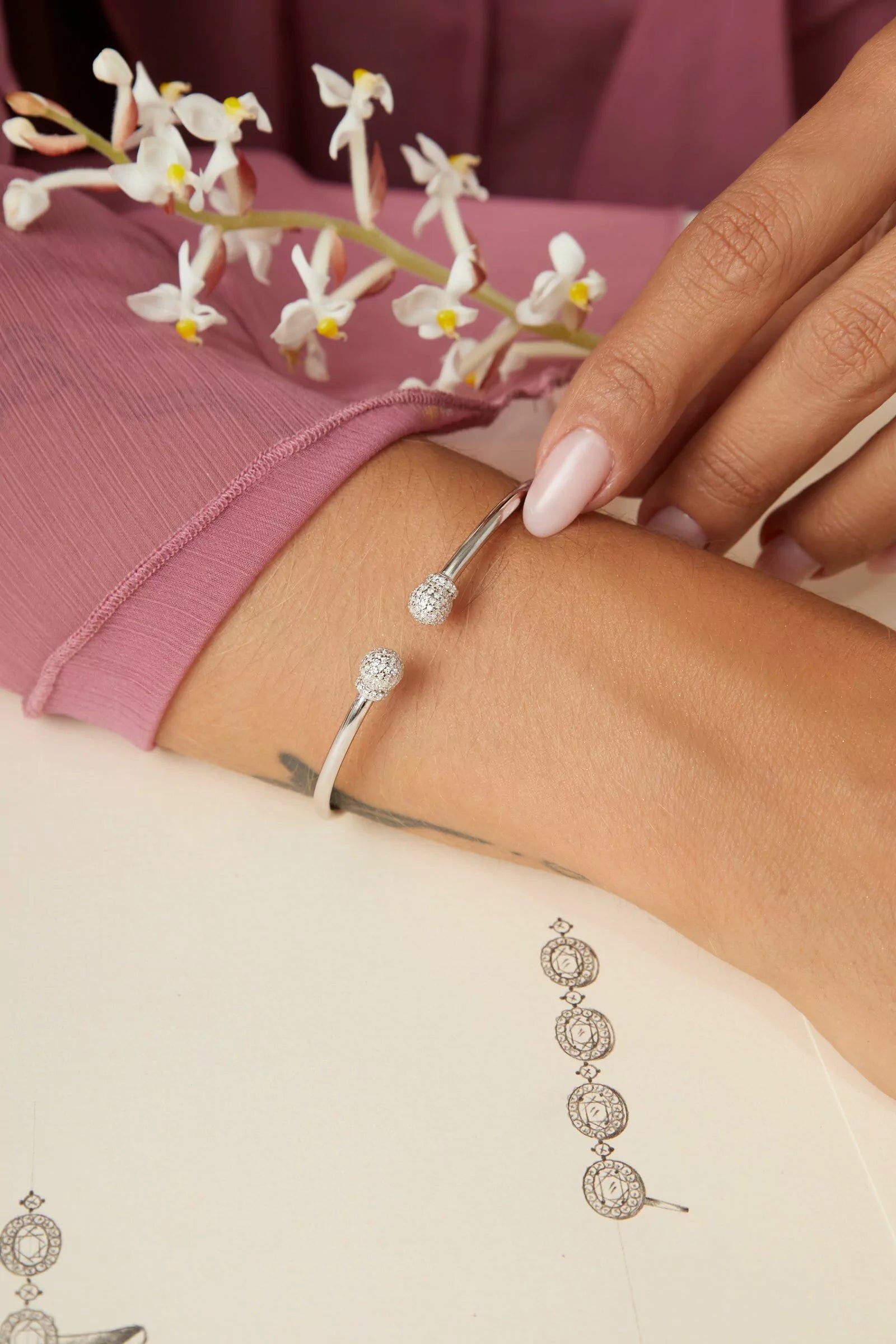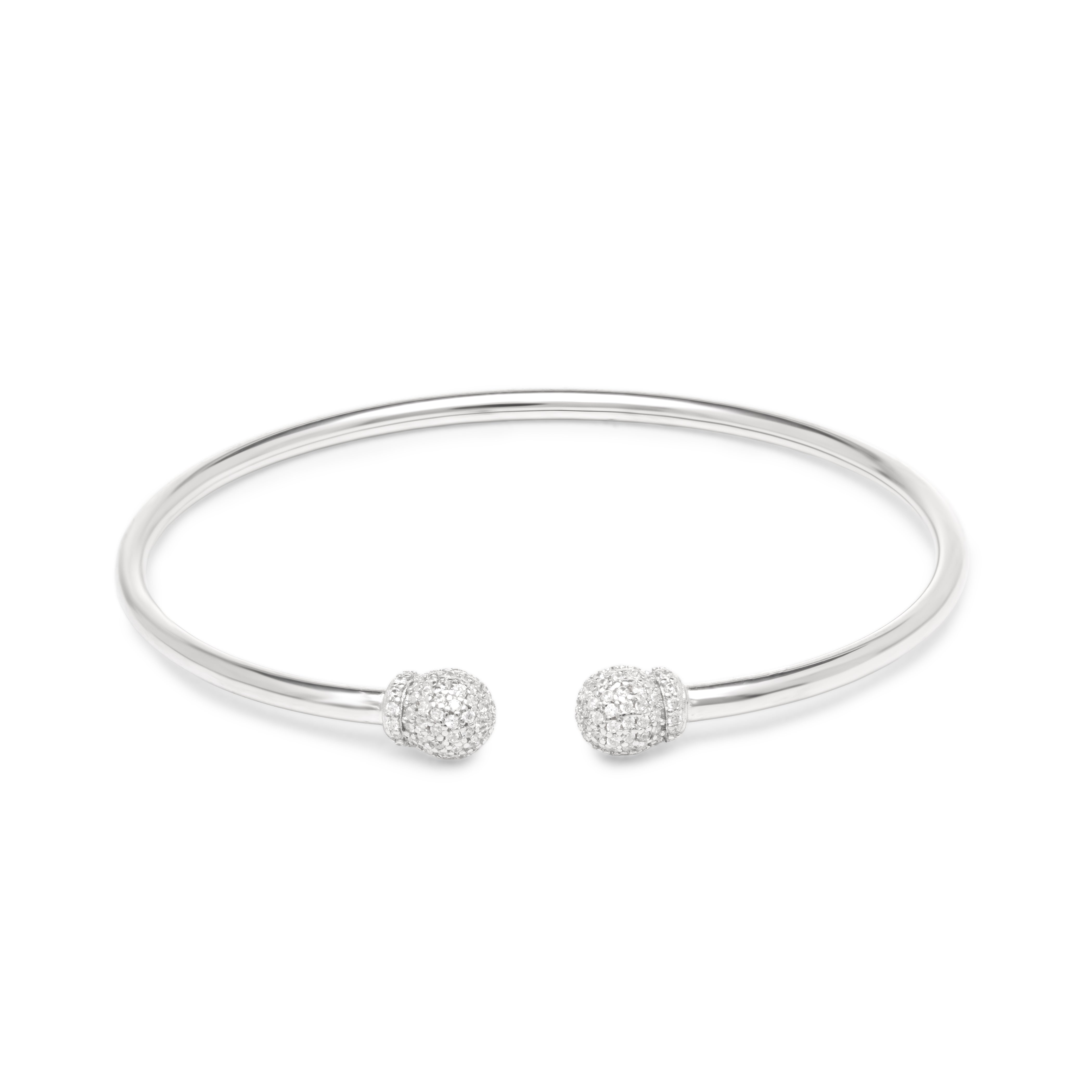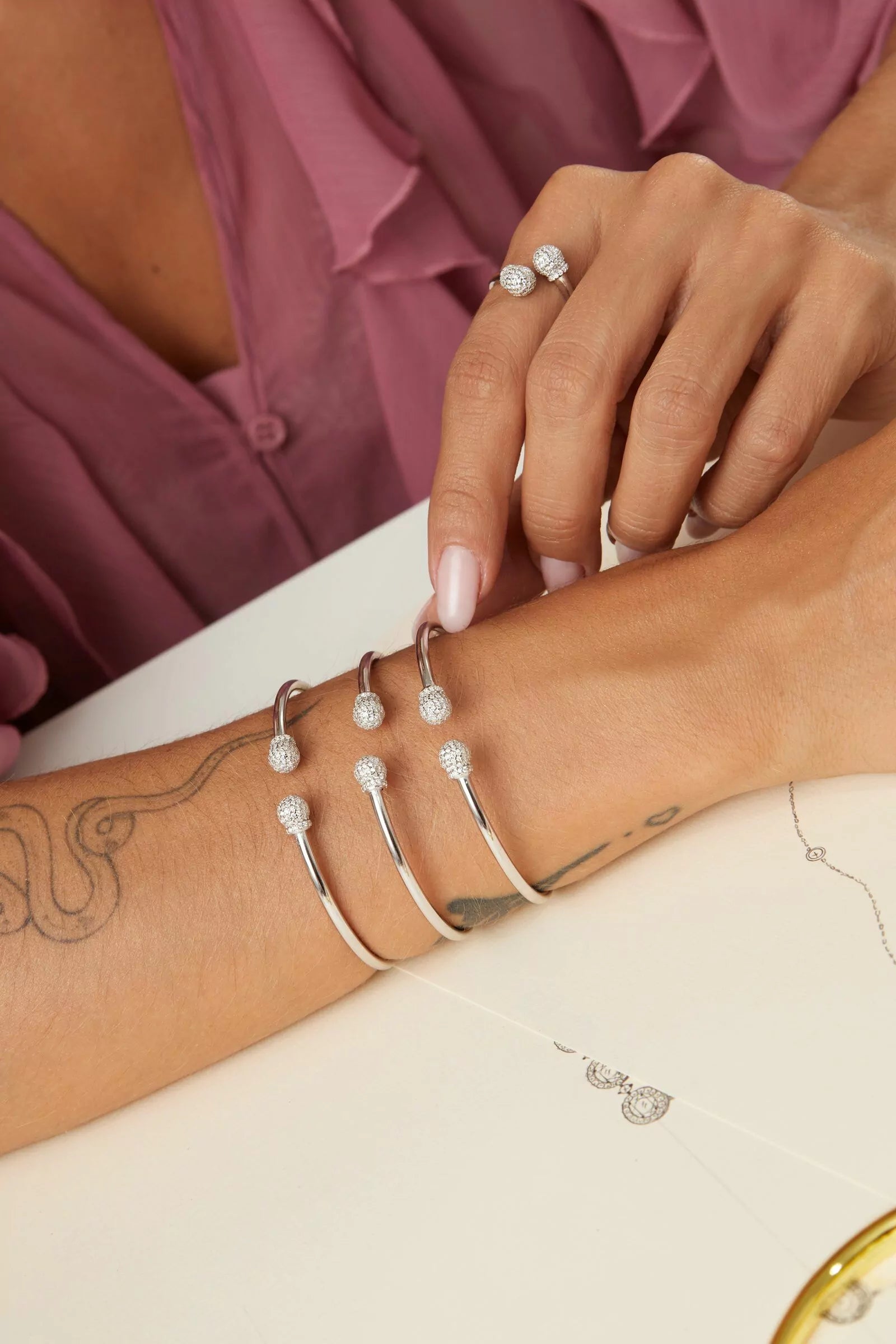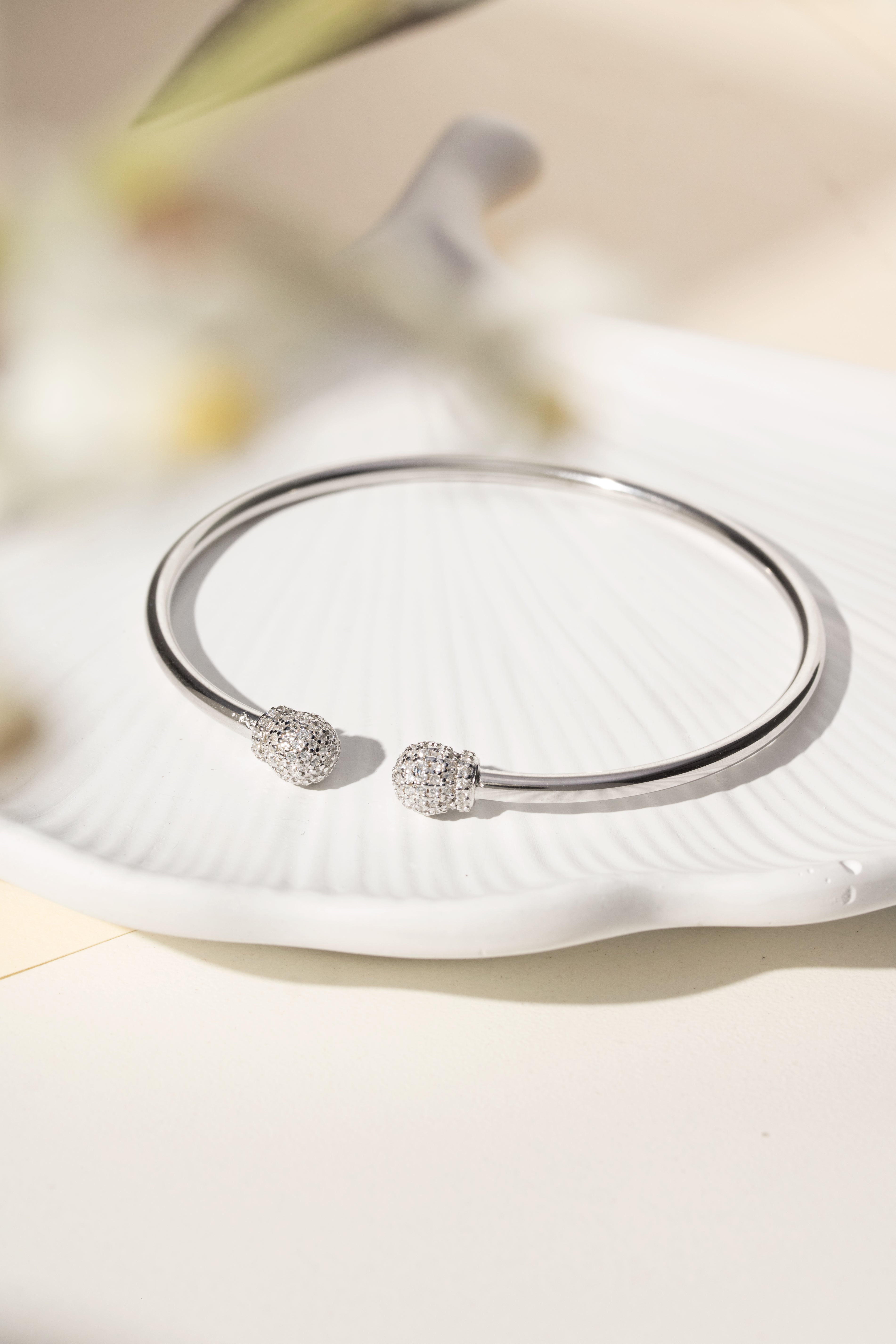 Elevate your elegance with this Sterling Silver Bangle adorned with shimmering zirconia stones. Crafted with precision, its polished sterling silver finish offers timeless durability while the zirconia accents provide radiant sparkle comparable to diamonds. Perfect for adding refined sophistication to any ensemble, this bangle combines expert craftsmanship with lasting luxury.