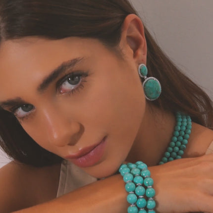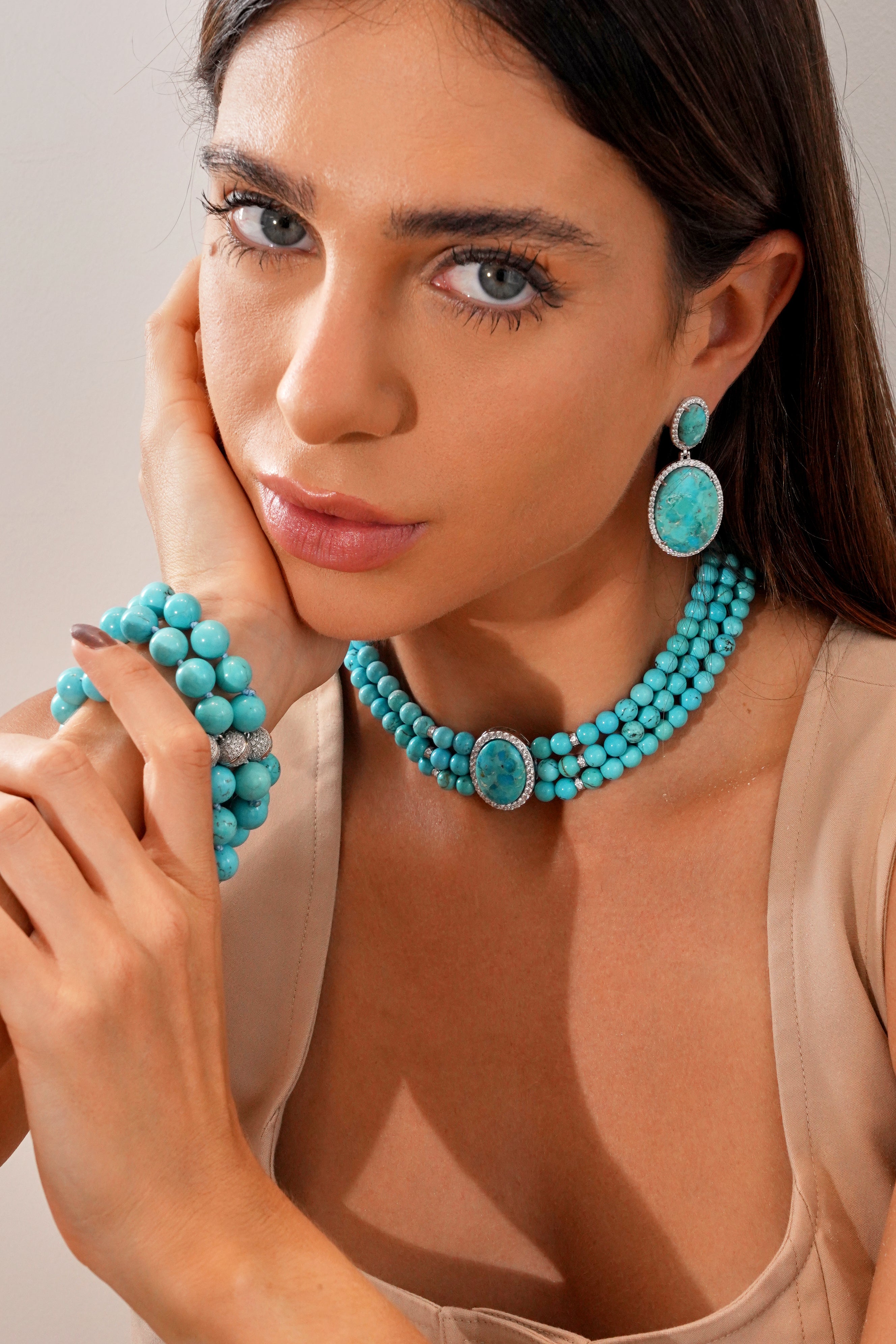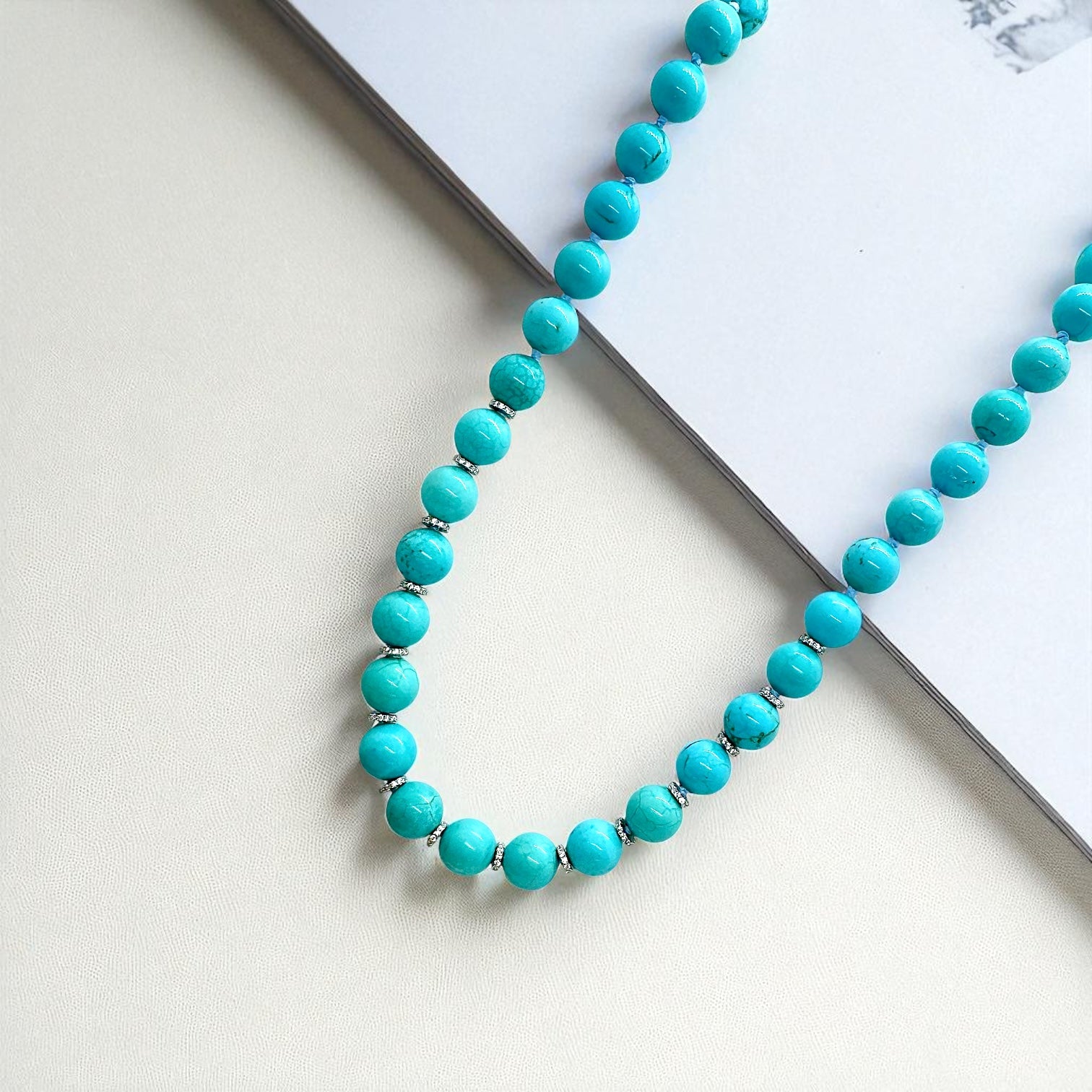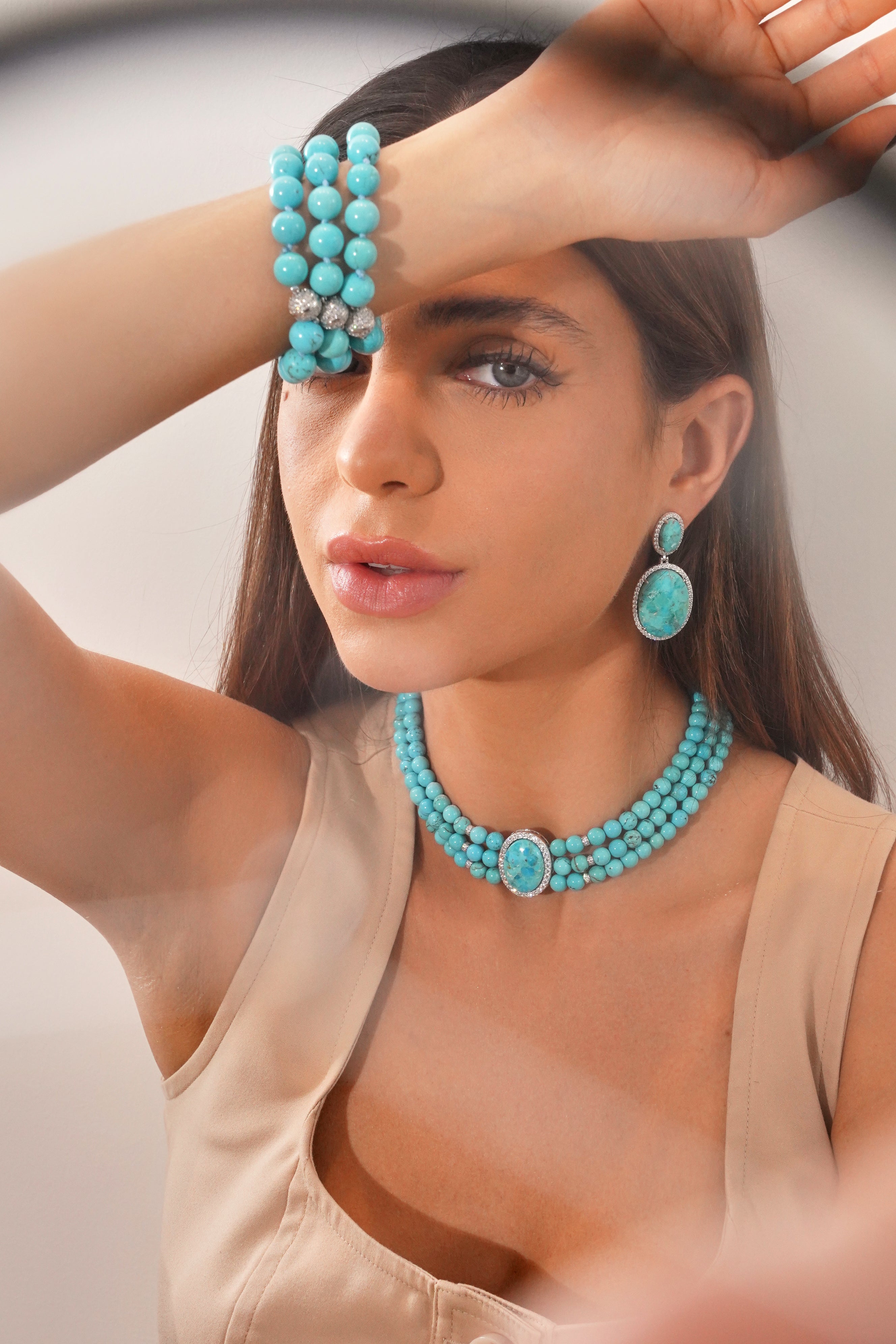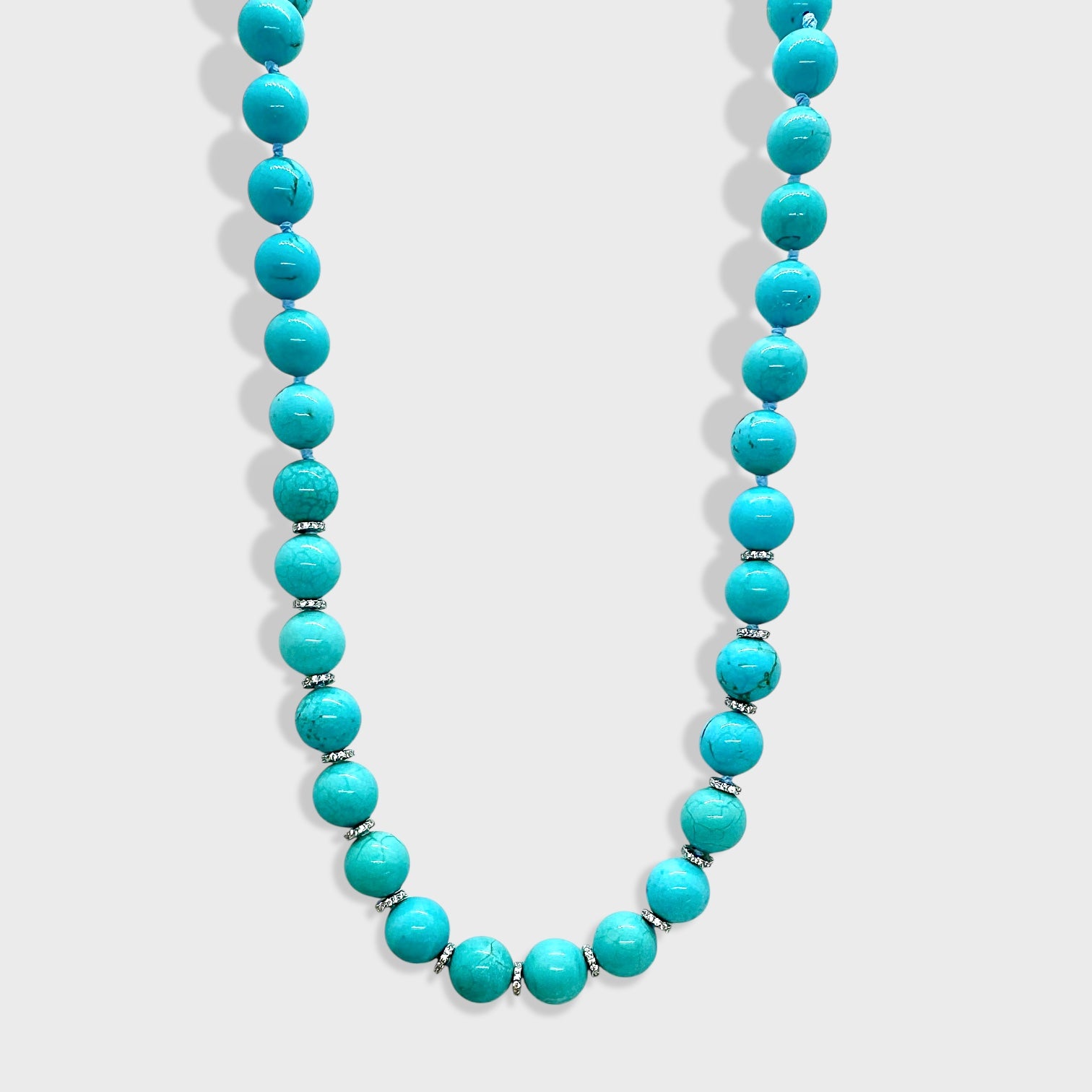 Elevate your style with this exquisite Turquoise Balls Necklace, expertly crafted to showcase vibrant turquoise stones set in a refined arrangement. Each bead radiates natural beauty, offering a subtle yet striking accent to both formal and casual ensembles. This necklace combines timeless elegance with a hint of bohemian charm, making it a versatile addition to any luxury jewelry collection. Perfect for those who appreciate sophisticated craftsmanship and enduring style.