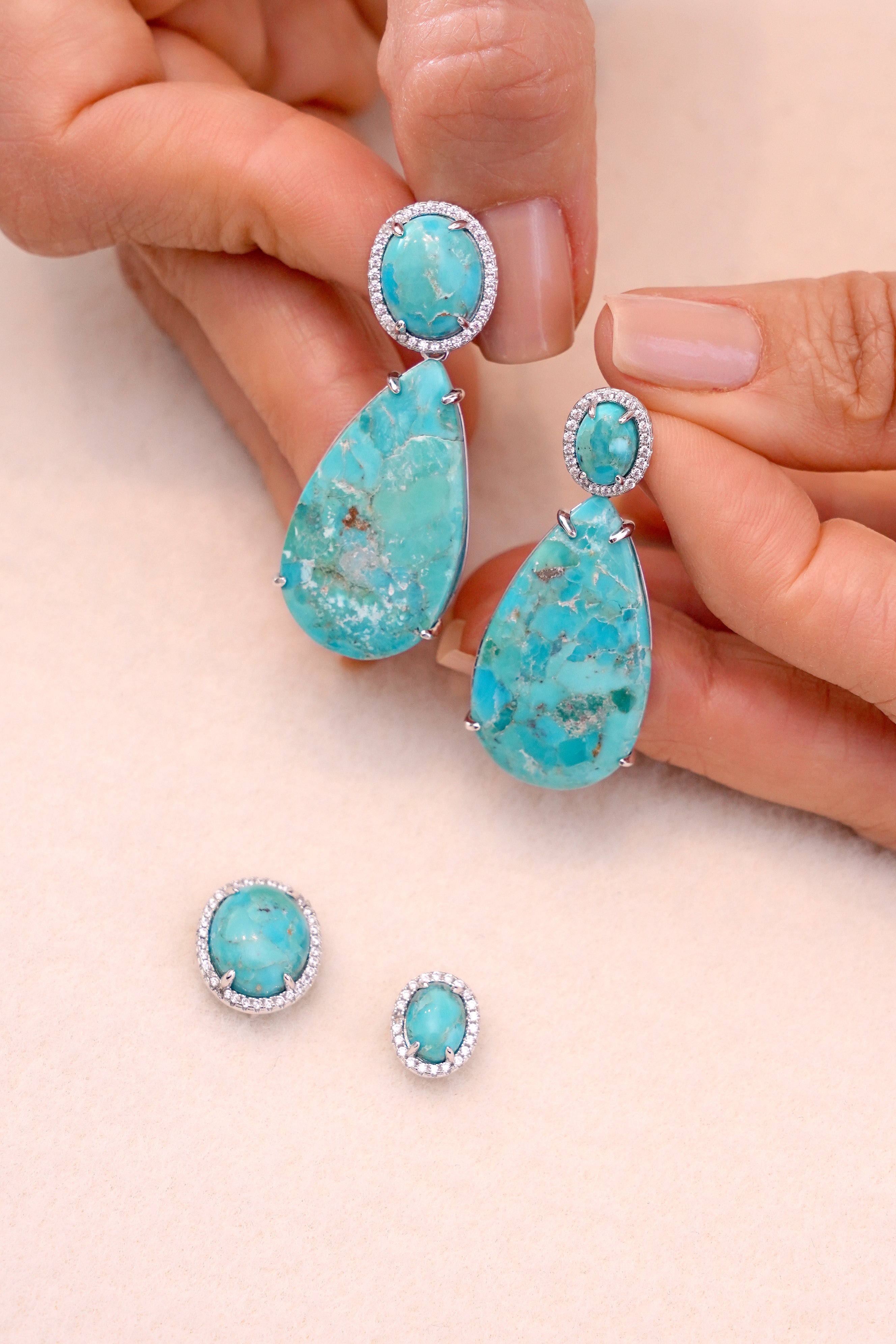 Elevate your elegance with these exquisite turquoise earrings, expertly crafted to highlight the vibrant natural hues of genuine turquoise stones. Their refined design combines timeless sophistication with a subtle pop of color, perfect for adding a distinctive touch to both formal and casual ensembles. Lightweight and comfortable, these earrings ensure all-day wearability while enhancing your signature style with a luxurious finish.